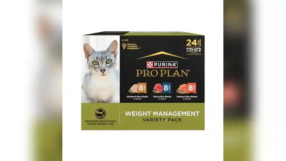 The Purina Pro Plan Adult Weight Management Variety Pack Entrees in Gravy Wet Cat Food is ideal for cat owners who want to help their adult cats maintain a healthy weight without sacrificing taste or nutrition. This product is perfect for cats that require weight management due to inactivity, age, or a tendency to gain weight easily. It is also suitable for pet parents looking for a convenient variety pack to keep their cats interested in mealtime.
