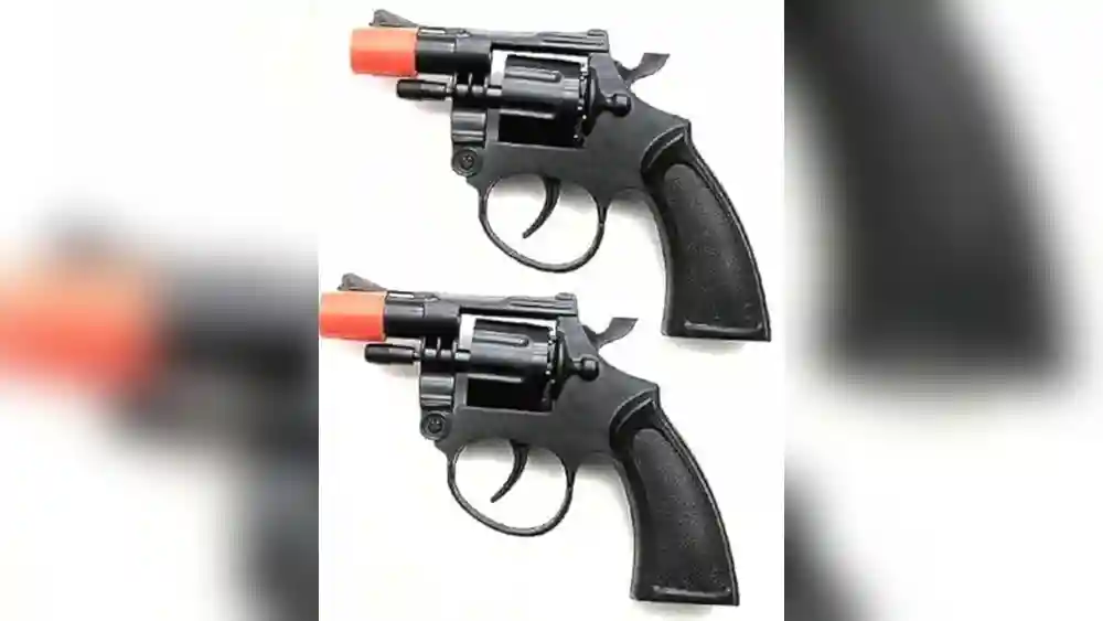 The Toy Cap Gun: Set Of 2 Police Style 38 Super Cap 8-Shot Revolvers is ideal for children and collectors who enjoy realistic role-playing or want to add authentic-looking pieces to their collection. Perfect for kids who love imaginative play involving police or action scenarios, this set offers a safe and fun alternative to real firearms, encouraging creativity and social interaction.