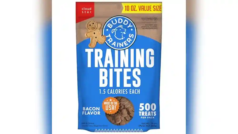 Small, bite-sized treats are best to avoid overfeeding and maintain focus. Treats like Buddy Biscuits and Blue Buffalo come in perfect sizes for quick rewards during training.