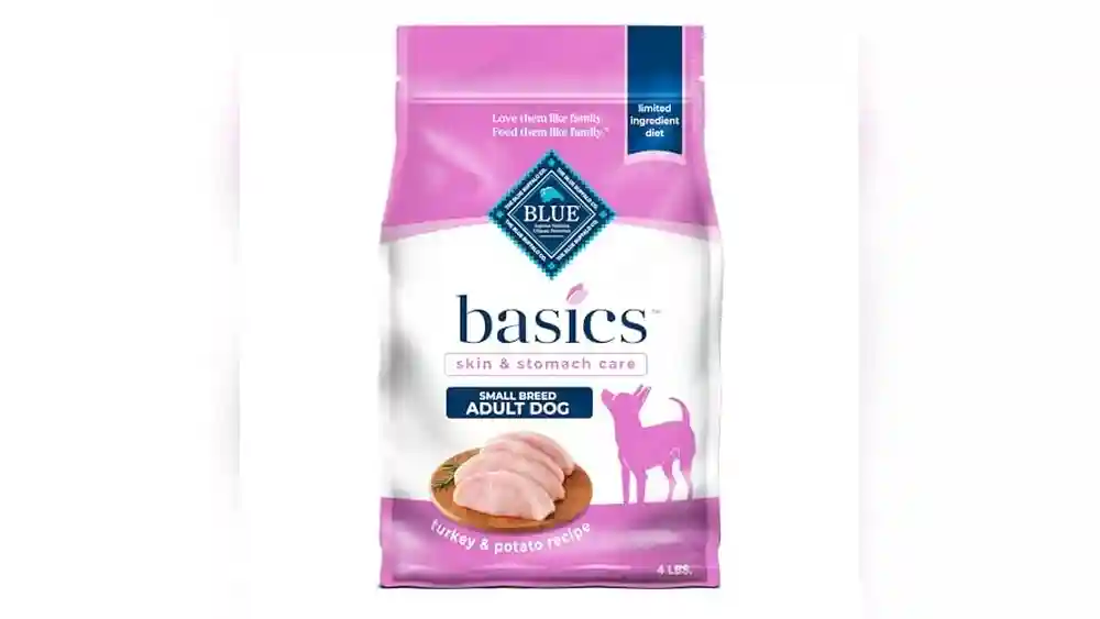 Blue Buffalo Basics Adult Small Breed Dry Dog Food for Skin & Stomach Care, Limited Ingredient Diet, Made in The USA with Natural Ingredients, Turkey & Potato Recipe, 4-lb. Bag