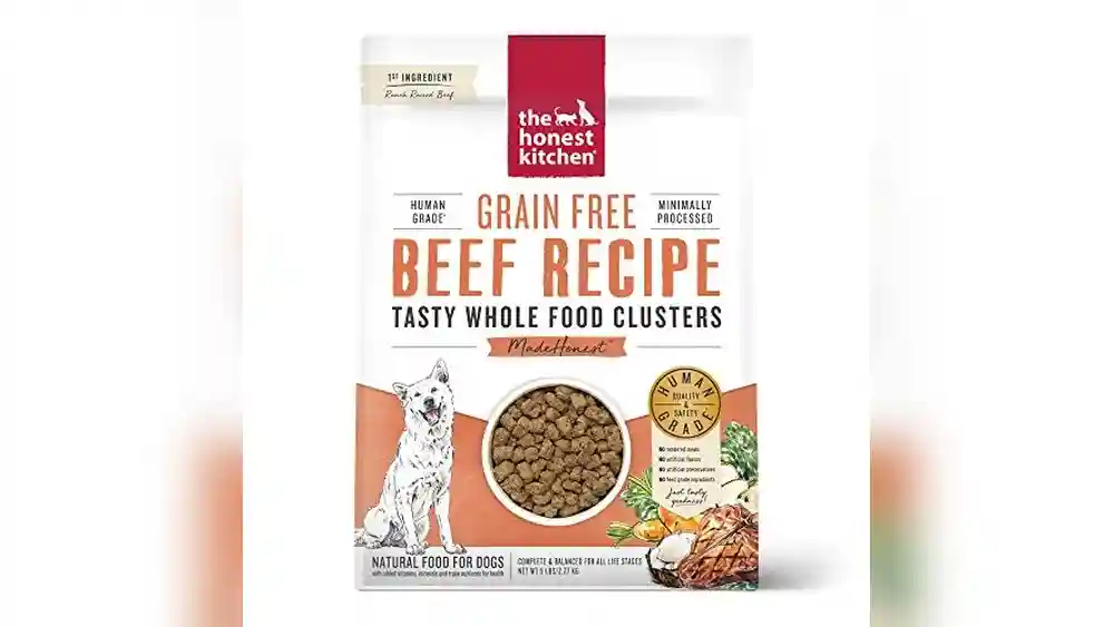 Some options like The Honest Kitchen Grain Free Beef are grain free. Others include whole grains for balanced nutrition.